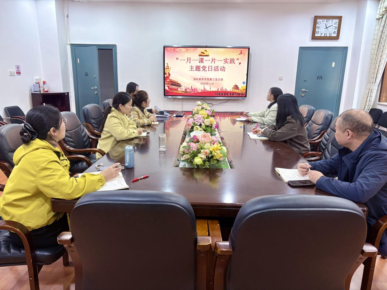 为深入学习贯彻党的二十届四中全会精神,推动党建工作与业务工作深度融合,11月以来,国际教育学院教工党支部积极响应学校党委组织部工作部署,扎实开展了“一月一课一片一实践”主题党日活动,取得了良好成效。