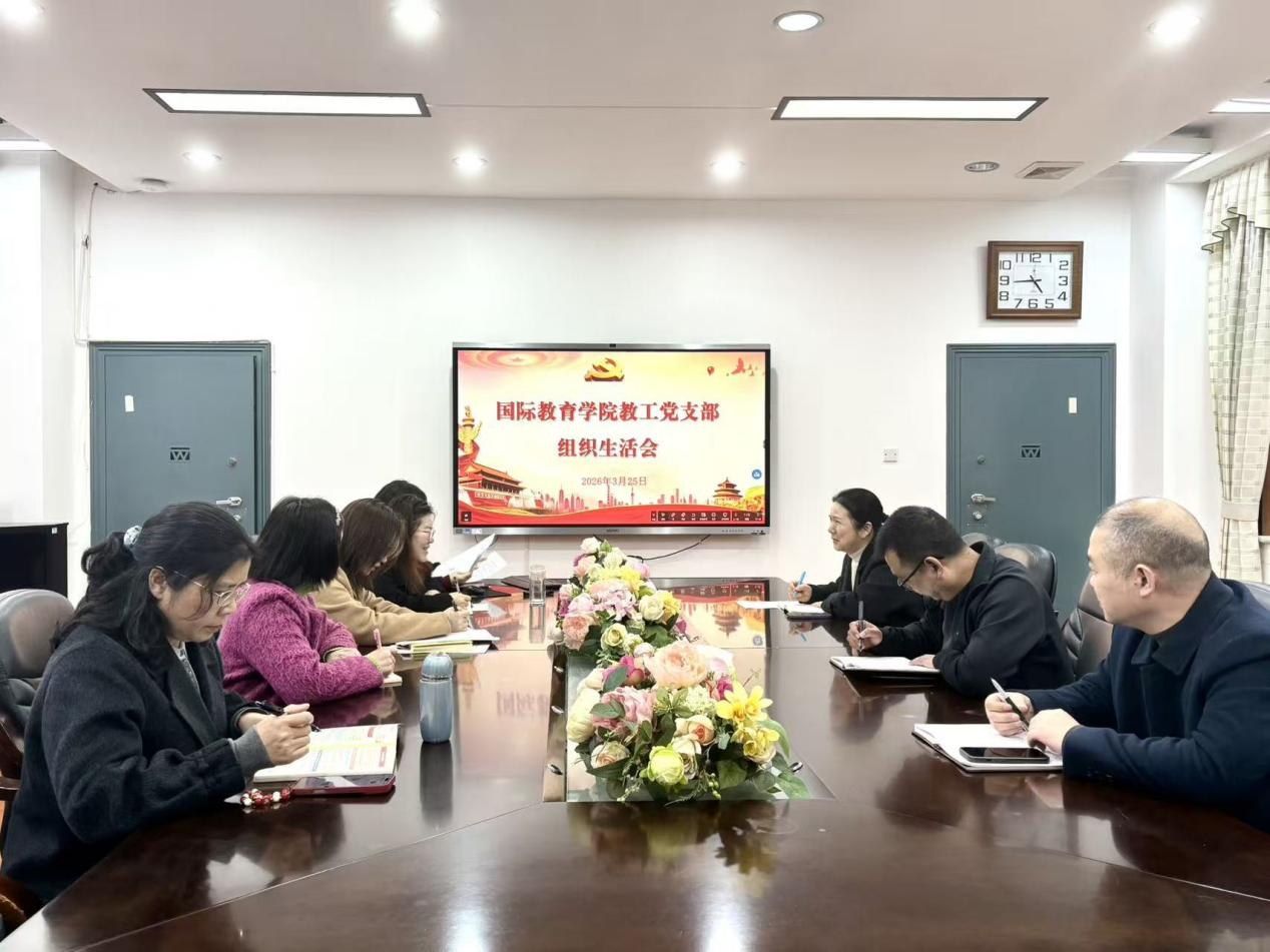 为深入学习贯彻党的二十届四中全会精神,扎实开展树立和践行正确政绩观学习教育,持续推进基层党组织规范化建设,3月26日下午,国际教育学院教工党支部在E105会议室开展2026年3月份主题党日活动,并同步召开2025年度组织生活会。党委书记魏坚到会指导,支部全体党员以“理论学习+党性体检+实践研讨”方式,锚定“党建引领教育国际化高质量发展”主线,紧扣正确政绩观要求,共谋学院事业发展新篇章。