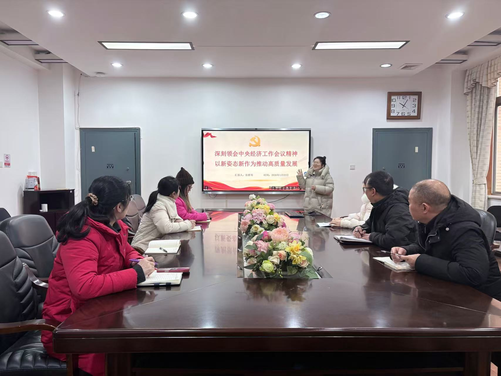 随后,党支部宣传委员张雅琴以《深刻领会中央经济工作会议精神 以新姿态新作为推动高质量发展》为题讲授专题党课。党课紧密围绕中央经济工作会议精神,结合2025年经济工作总结与2026年经济工作部署,重点解读了会议提出的“五个必须”规律性认识、“稳中求进、提质增效”政策取向及八项重点任务等核心内容。