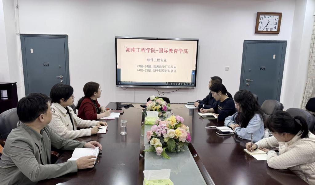 10 月 15 日晚间,国际教育学院于 E105 会议室召开雅思教学专题研讨会。本次会议聚焦中新合作办学项目学生的语言能力培养需求,由学院副院长林愿主持,教务办公室相关负责人员与北雅教育派出的雅思专业教师团队共同出席,围绕雅思课程共建、教学推进及人才培养优化展开深度交流。