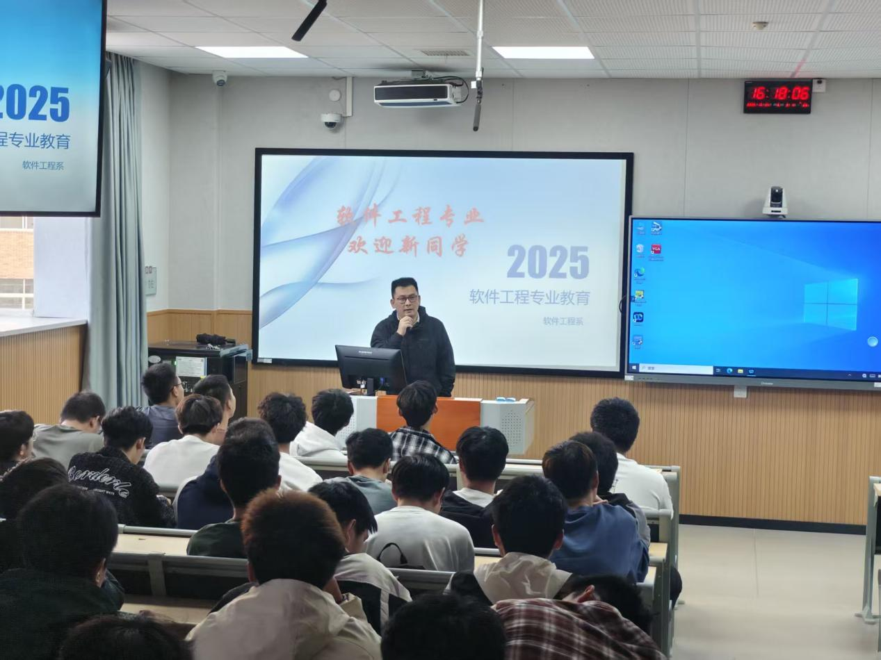 何潇为软件工程专业新生进行了专业教育。他充分肯定了该专业未来发展前景和职业发展潜力,着重讲解了我校与新西兰合作办学的软件工程专业所引进的外方教学模块、西方先进科研经验。